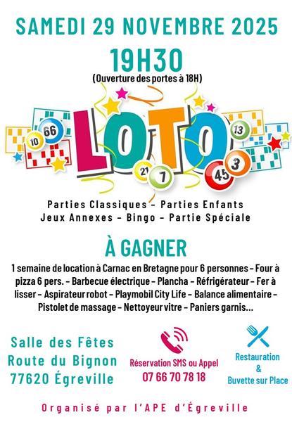 Venez partager un moment convivial en famille ou entre amis lors du super loto à Egreville. De supers lots sont à gagner.