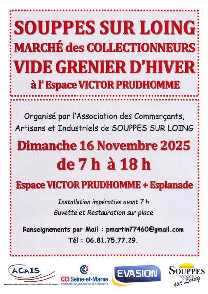 Marché du collectionneur et vide grenier d'hiver à Souppes-sur-Loing. Buvette et restauration sur place.