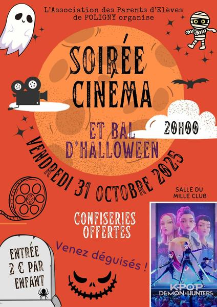 L’Association des Parents d’Élèves de Poligny organise une soirée cinéma suivie d’un bal d’Halloween à la salle du Mille Club. Venez déguisés pour partager un moment festif et regarder le film KPOP Demon Hunters !