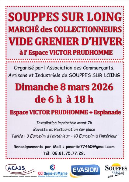 Marché du collectionneur et vide grenier d'hiver à Souppes-sur-Loing. Buvette et restauration sur place.