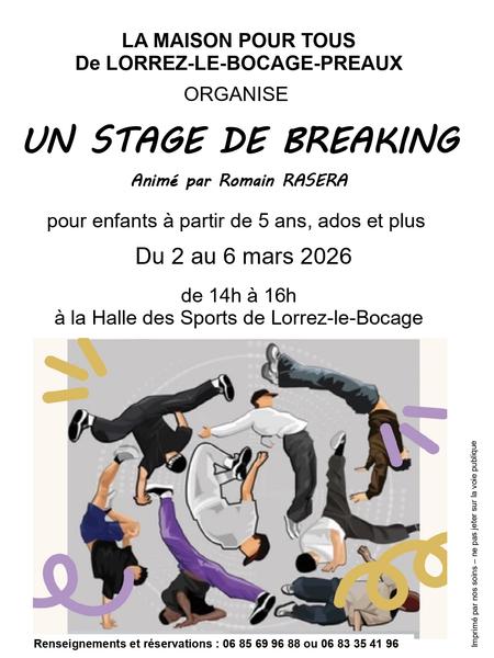 La Maison Pour Tous de Lorrez-le-Bocage-Préaux organise un stage de breaking animé par Romain Rasera.