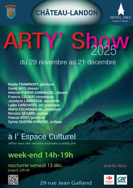 L’Espace Culturel de Château-Landon accueille la 2ème édition d’ARTY’Show, un événement artistique original. ARTY’Show se présente comme une expérience immersive où la magie de Noël rencontre la création contemporaine, sur fond poétique d’aurore boréale.